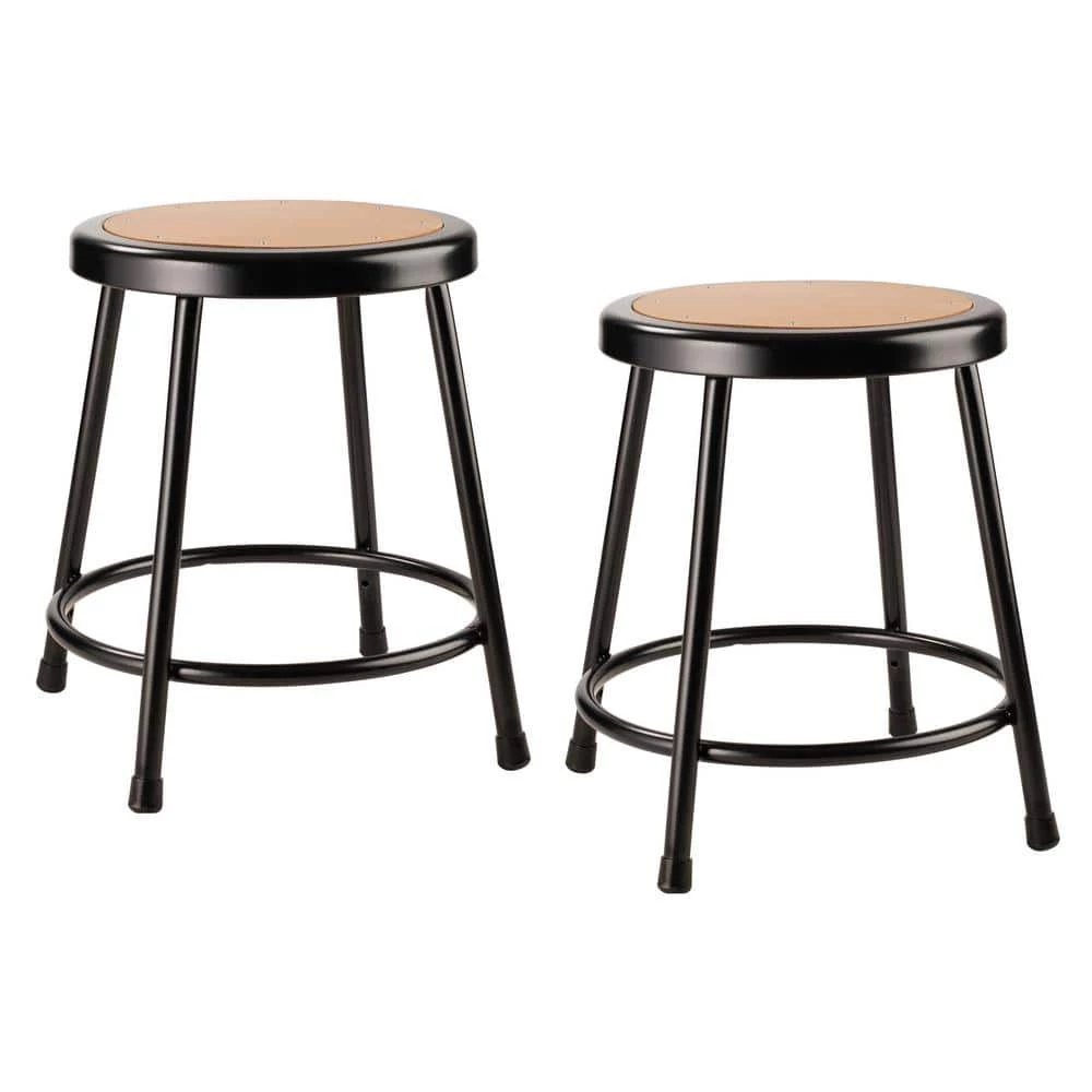 The durable construction and classic design of the black 6200 Series heavy-duty stools are ideal for hands-on educational settings like art rooms, science labs, home economics or shop classrooms. These reliable black-colored stools feature a sturdy frame of 18-Gauge steel tubing securely welded to a 14 in. Dia seat pan. Riveted to the pan are firm, round Masonite seats that will not warp, chip or crack as they provide years of dependable use. Footrest rings are securely bonded to each leg with 4-spotwell contact points.