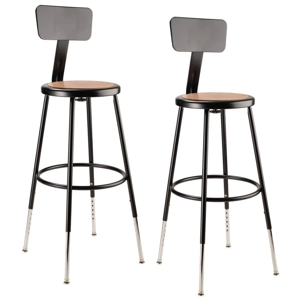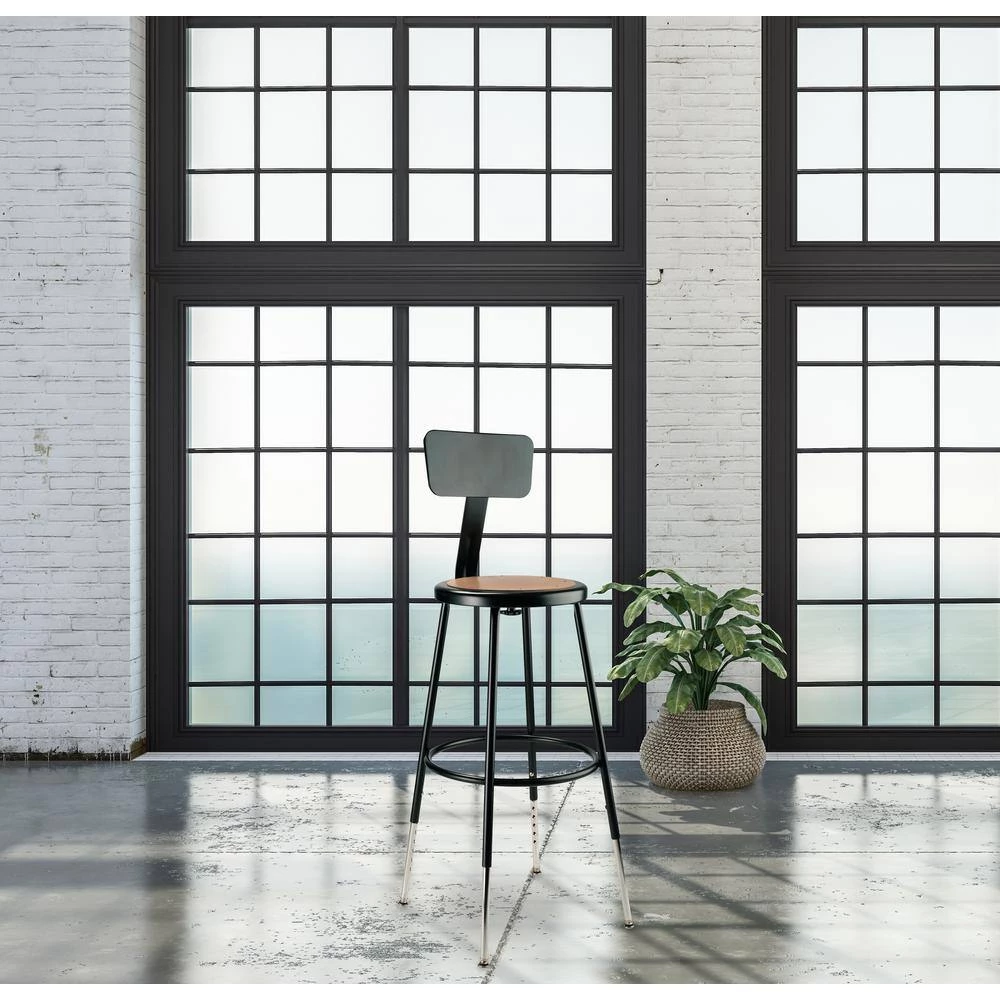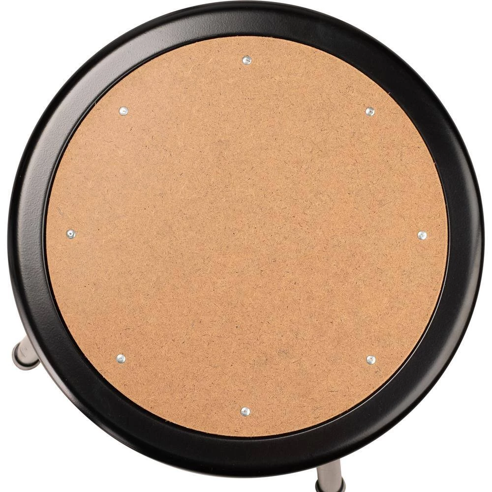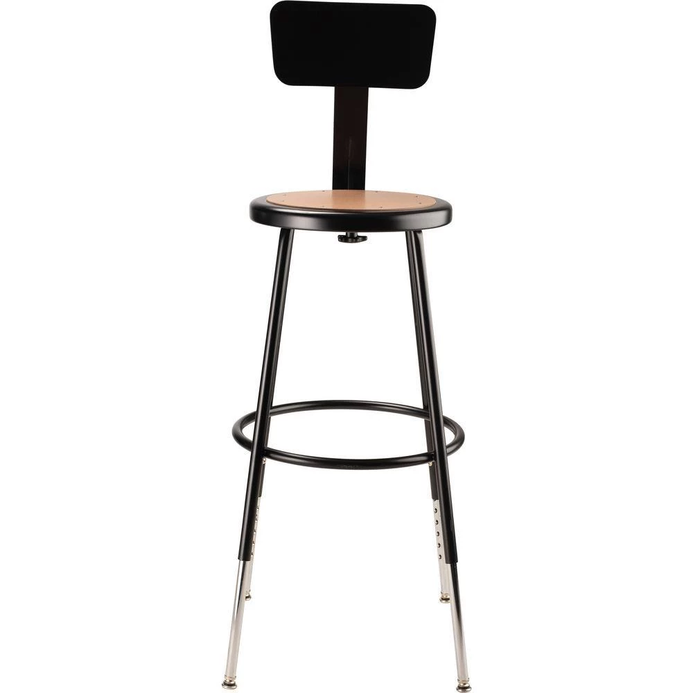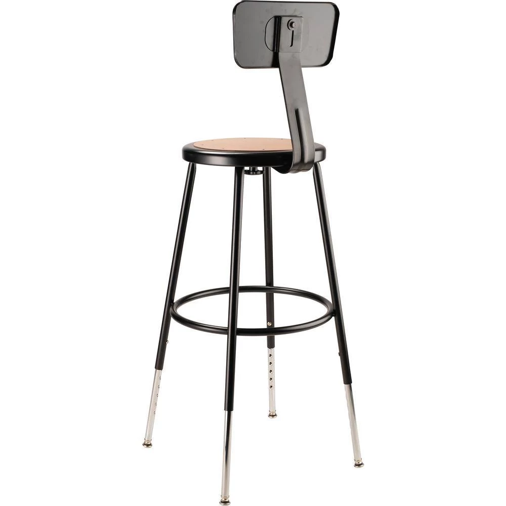The durable construction and classic design of the black 6200 Series heavy-duty stools are ideal for hands-on educational settings like art rooms, science labs, home economics or shop classrooms. These reliable black-colored stools feature a sturdy frame of 18-Gauge steel tubing securely welded to a 14 in. Dia seat pan. Riveted to the pan are firm, round Masonite seats that will not warp, chip or crack as they provide years of dependable use. Footrest rings are securely bonded to each leg with four spot well contact points. This model features height-adjustable legs extending from 25 in. to 33 in. in 1 in. increments and adjustable backrests that can be moved 2 in. up/down and forward/back.