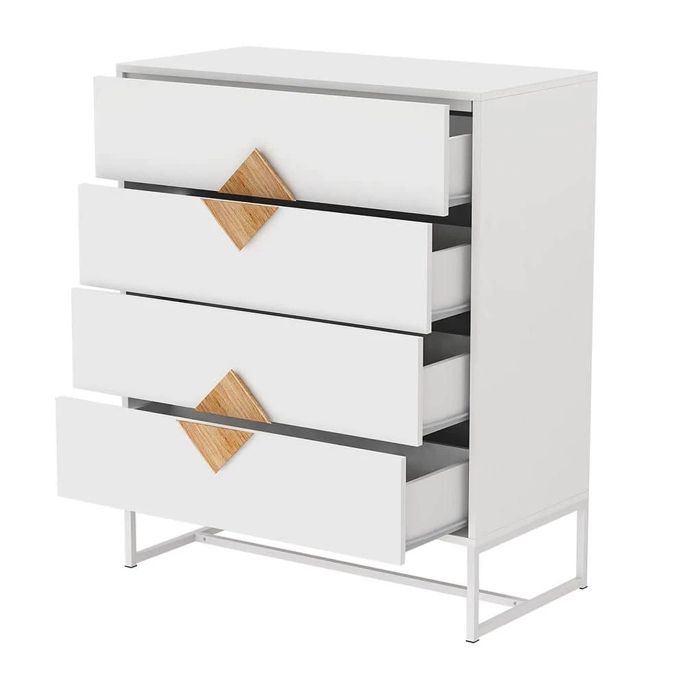 Large storage space and white dresser chest with 4 large drawers to store stuff with more classification, such as clothes, socks, underwear or ties, to satisfy your bedroom storage needs. The 4-drawer chest can be used to store your keys, wallet, or notebook. Also can be used as toddlers cabinet to store children books, small toys or other kid stuff.