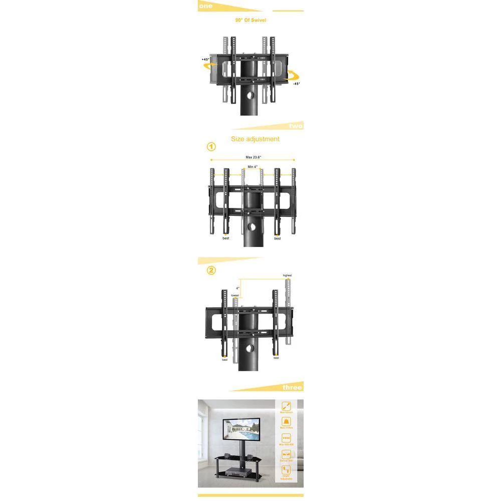 - This floor TV stand adds a unique ability to swivel where others cannot. Now your TV can be directed up to 30 degrees in each direction towards the viewing area by pivoting the unit.