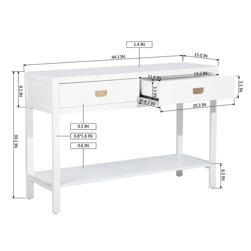 44.3 in. White Rectangle Wood Console Table Sideboard with Bottom Shelf and 2-Drawer by VERYKE -Greenington Shop white veryke console tables ygx gxca0273 c3 1000