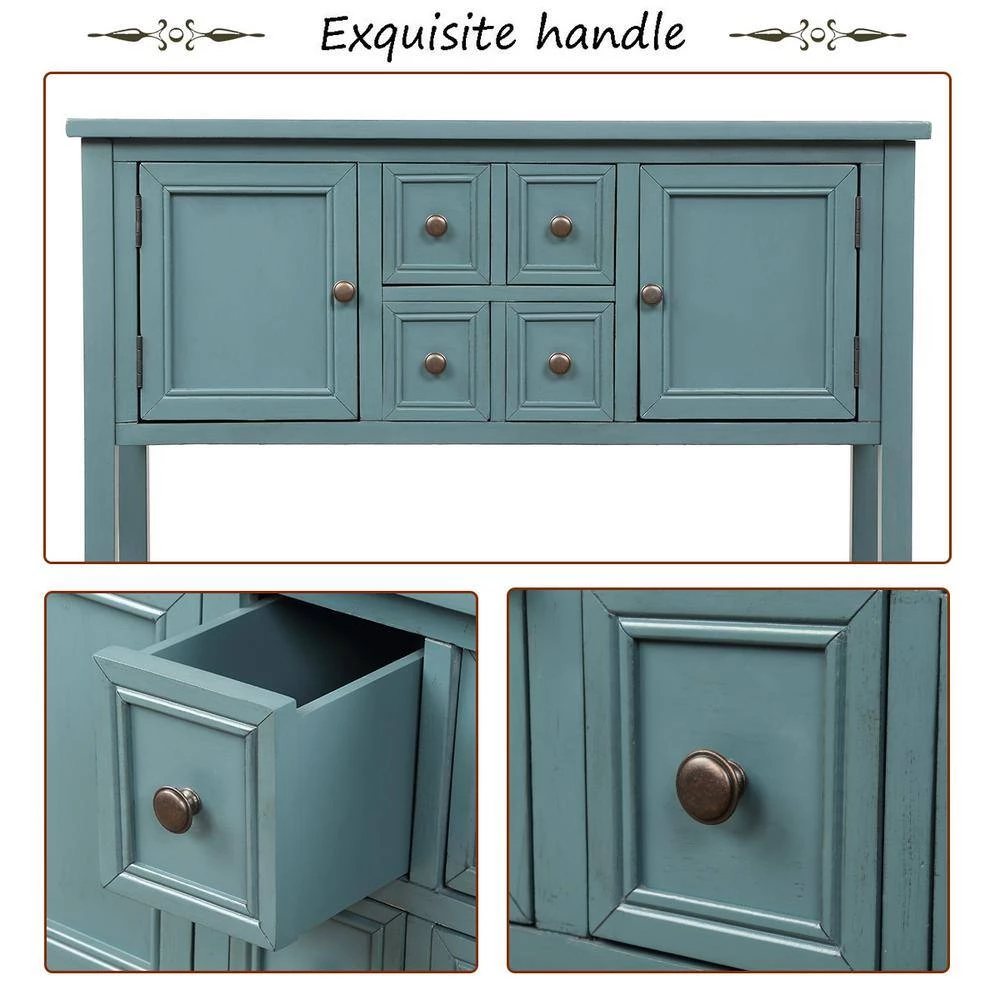 - Sideboard table comes complete with 4-storage drawers, 2-cabinets and bottom shelf