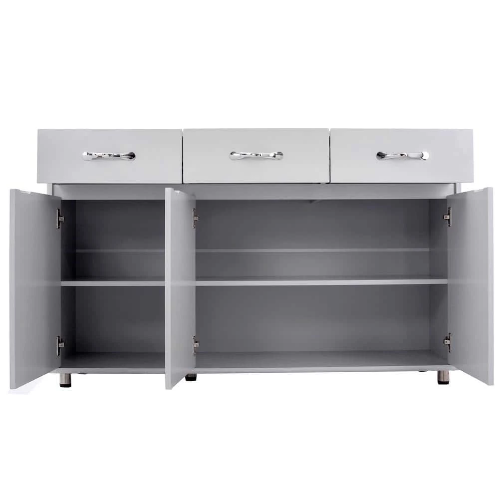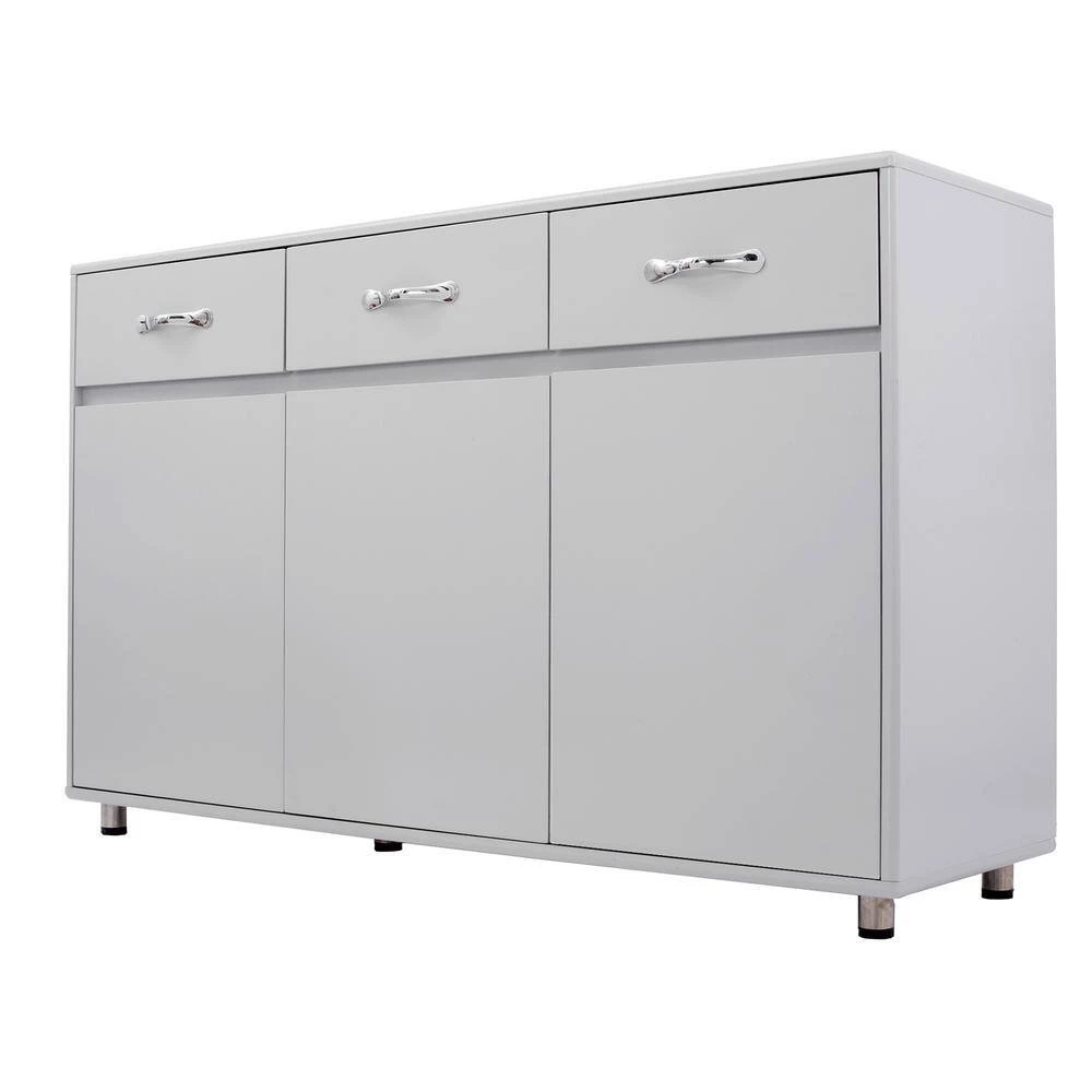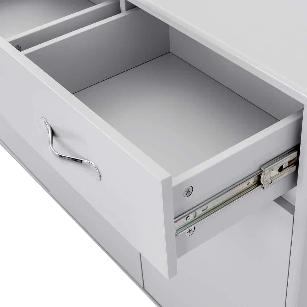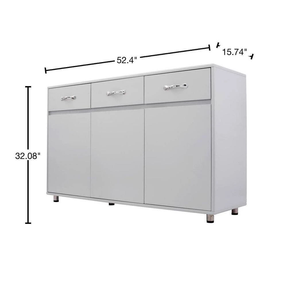 - White/Gray color cabinet with 3 drawers and 3 doors, 2 different size shelving space can meet your storage
