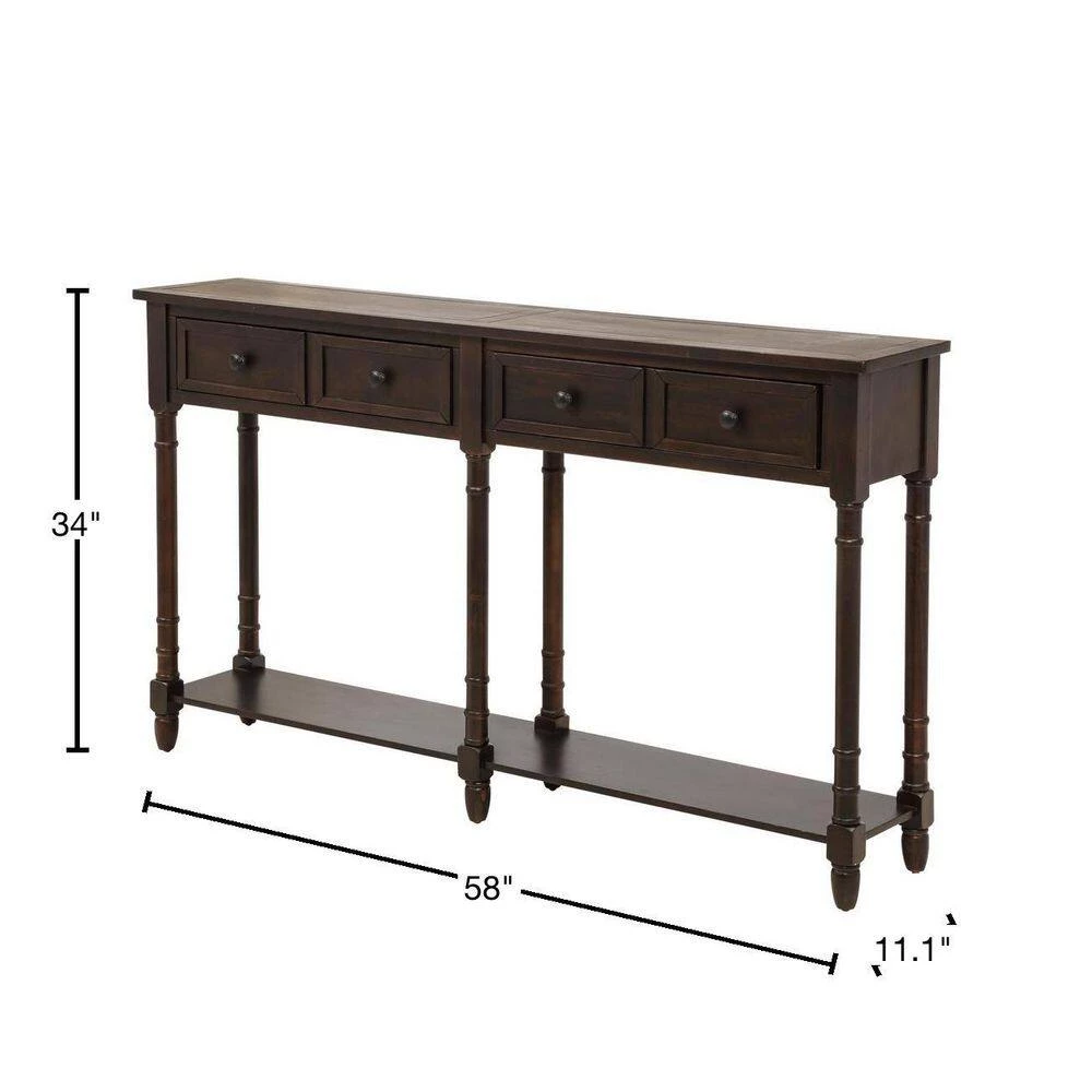 Rectangular console table with black painted line , elegantly tapered table legs , round deco knobs with Black exude a high-end, elegant feel.Classic accent table fits perfectly in any living room. What a stylish piece of console table set to elevate your living room or foyer entryway space!Simply assemble legs and bottom shelf with the provided instructions.