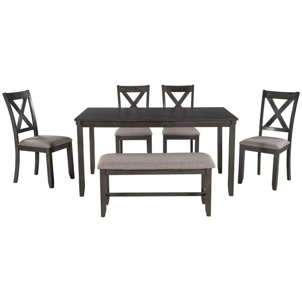 This Rectangular dining table set gives 4 wooden dining chairs, 1 dining table and 1 fabulous dining bench which can fully accommodate your family. Offer a touch of elegance to your dining area with our wooden dining table set. The rectangular table is made of high quality MDF veneer pine while the decorated wooden strips at the edges of both chairs and tabletop help to enhance the solid, traditional feel. Ideal for dinette, kitchen, and dining areas, this multi-functional dining set seats up to 6 people, perfect for families to enjoy meal times together.