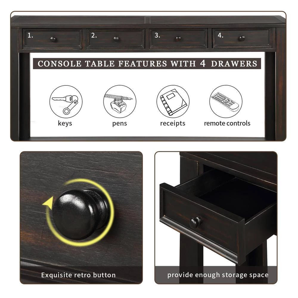 - Console table features with 4-drawers and a fixed lower shelf and long enough tabletop which provide enough storage space