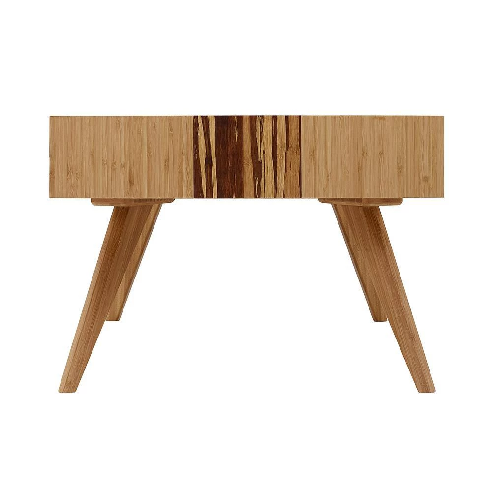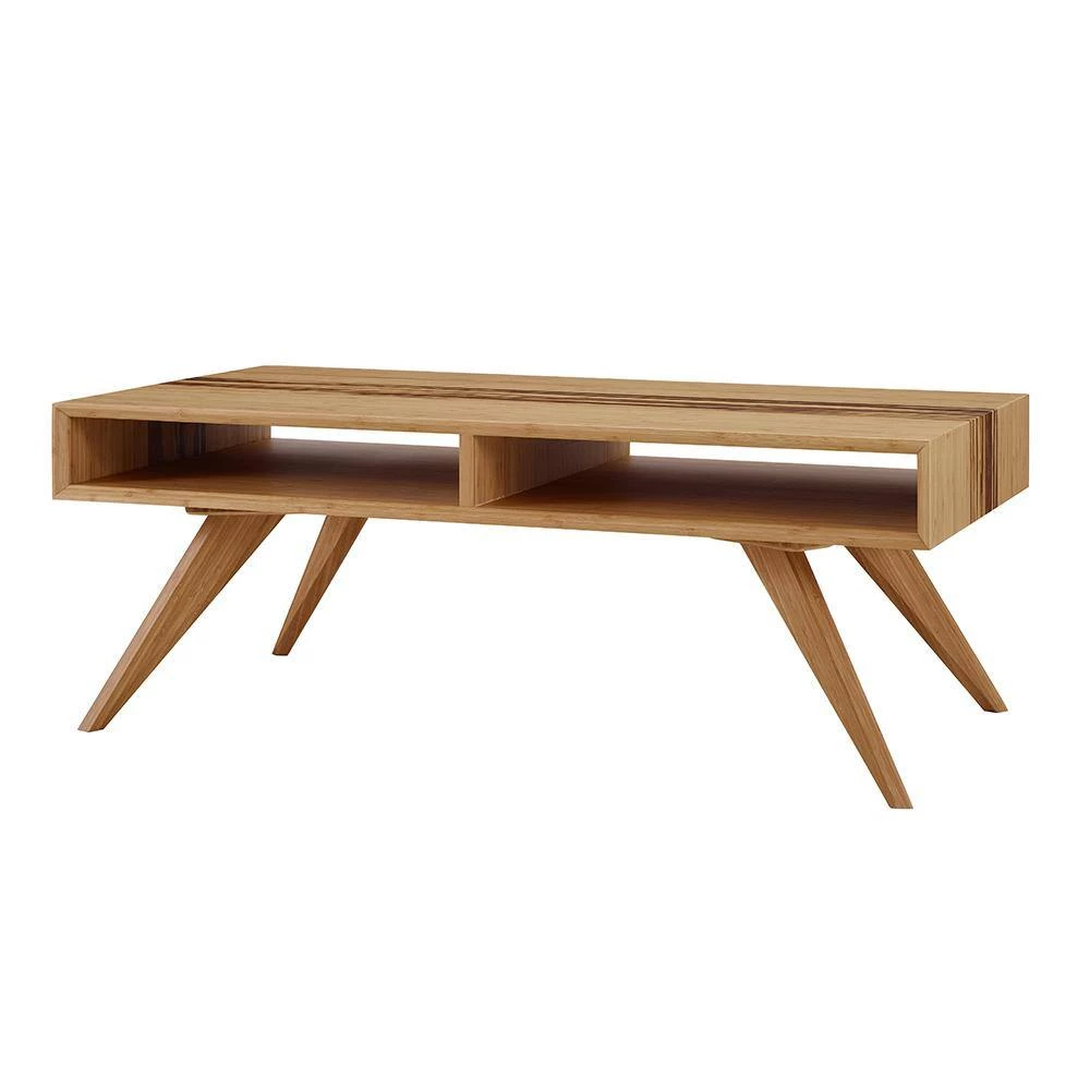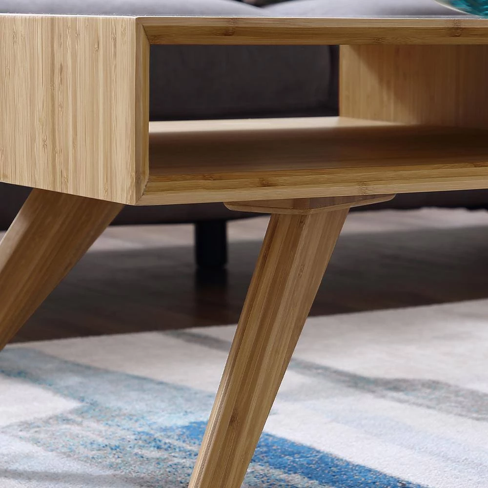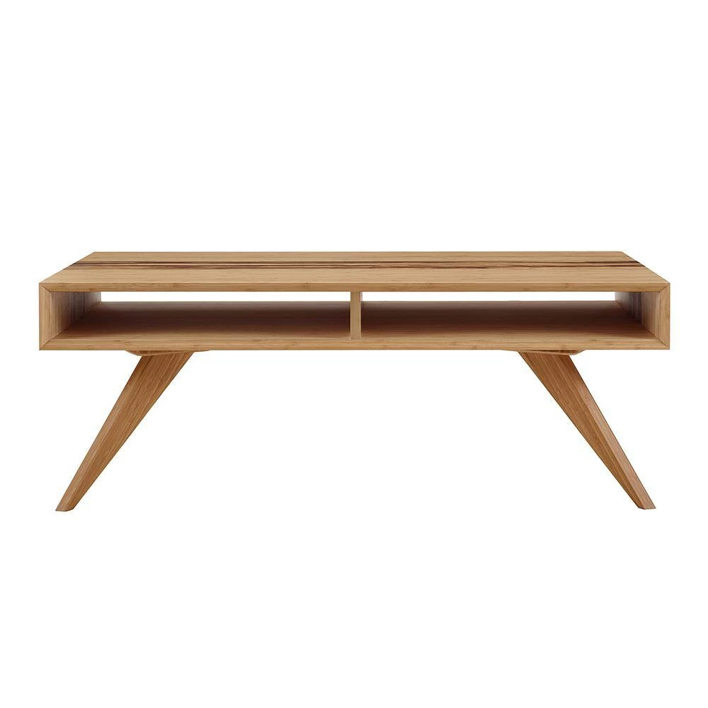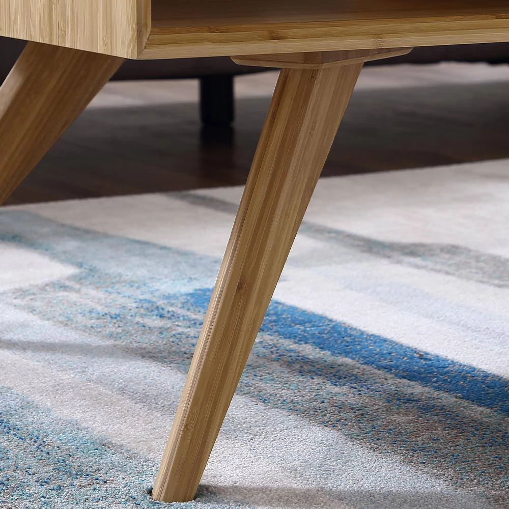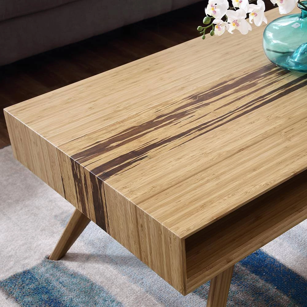 Expertly crafted in earth friendly solid bamboo, Greenington’s modern Azara coffee table highlights a center accent of exotic Tiger bamboo which waterfall down the sides. Beautifully beveled edges surround clever built in cubbies to stash your remote, magazines and any items you want to keep handy. Shown in caramelized with accents in exotic Tiger bamboo. No stain is used, the colors are achieved with heat and pressure. Exotic Tiger combines the light and dark material, creating a unique and beautifully striped grain with continuous colors throughout. No two pieces are exactly alike. Variation in grain and color enrich the natural beauty of bamboo furniture and make each piece unique. Slight differences in bamboo shade colors are signs that the furniture has been crafted from solid bamboo and is considered a benchmark of quality.
