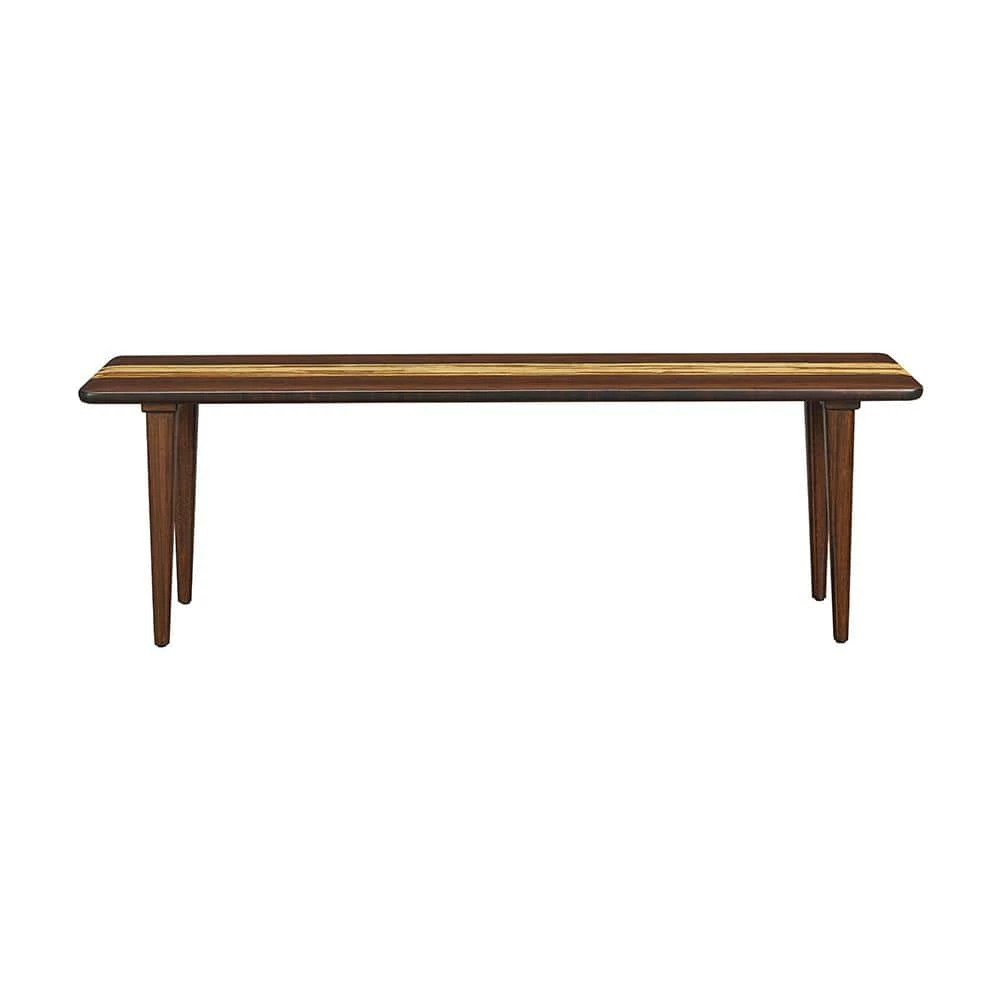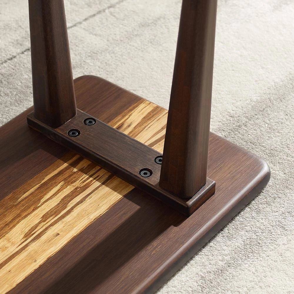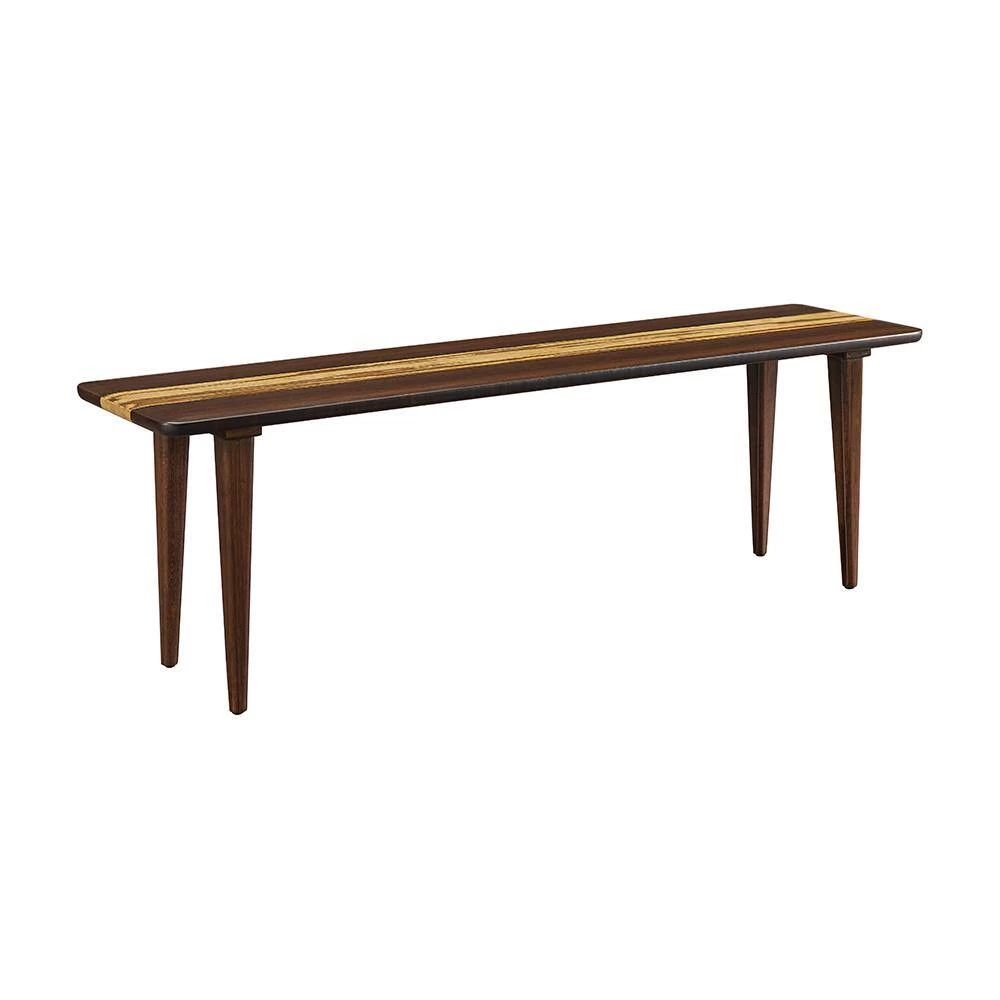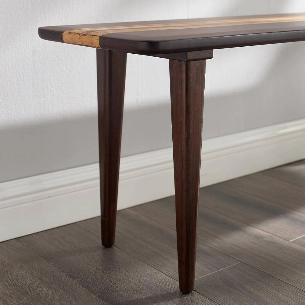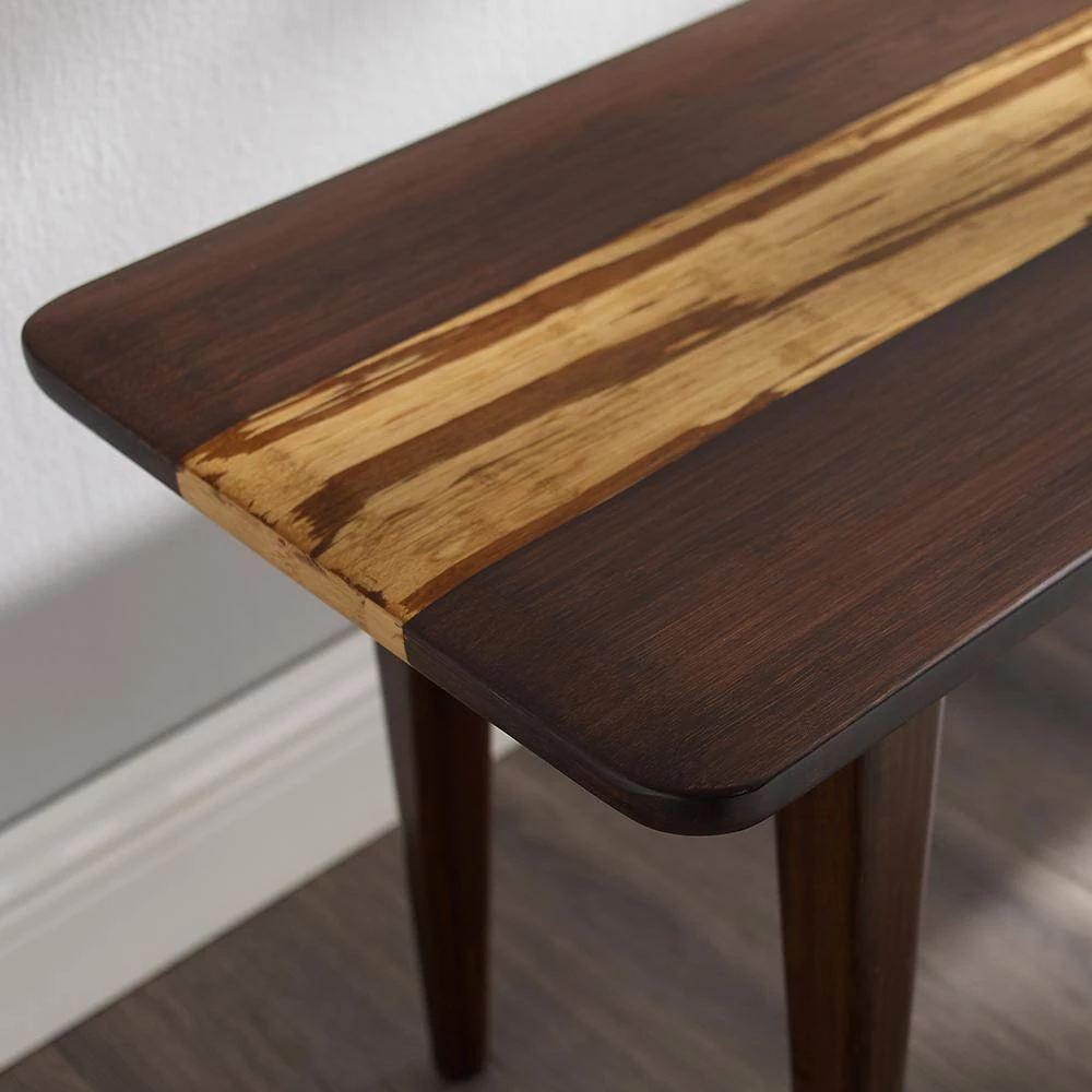 Expertly crafted in earth friendly solid bamboo, the Azara bench is an elegant design with unlimited uses. Minimal and modern with beveled edges and tapered legs, Azara looks stunning in an entry, dining room, at the foot of your bed, or extra seating for any room. Showcasing a beautiful mix of materials, the bench seat displays a center accent crafted in solid exotic Tiger bamboo. The Azara bench is available in two colors; Caramelized uses no stain, the colors are achieved with heat and pressure or hand finished in dark Sable; each with a center Tiger accent. Exotic Tiger combines the light and dark material, creating a unique and beautifully striped grain with continuous colors throughout. Variation in grain and color enrich the natural beauty of bamboo furniture and make each piece unique. Slight differences in bamboo shade colors are signs that the furniture has been crafted from solid bamboo and is considered a benchmark of quality.