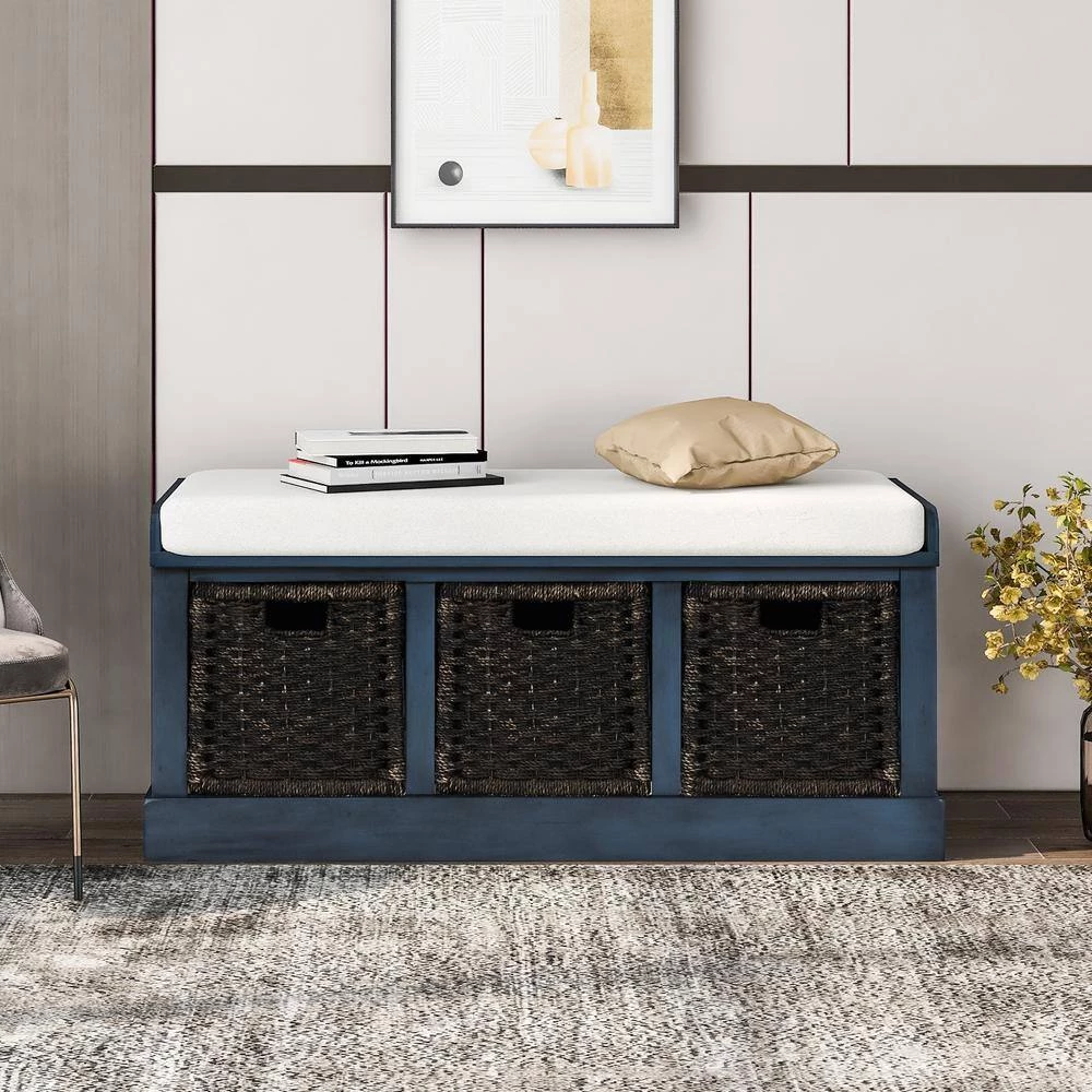 - Removable linen blend cushion provides a layer of comfort to this storage bench, the inner is foam, you can feel free to sit on it