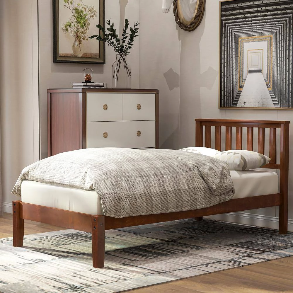 This Wood Platform Bed is a minimalistic, stylish bed base that works well with a variety of decorating styles and makes it easy for you to beautify the look of your lovely bedroom. This Platform Bed features a headboard, a lower footboard and wood slats for support. White colored surface for an elegant look makes this bed frame an excellent addition to any bedroom, do not miss the chance take it home.