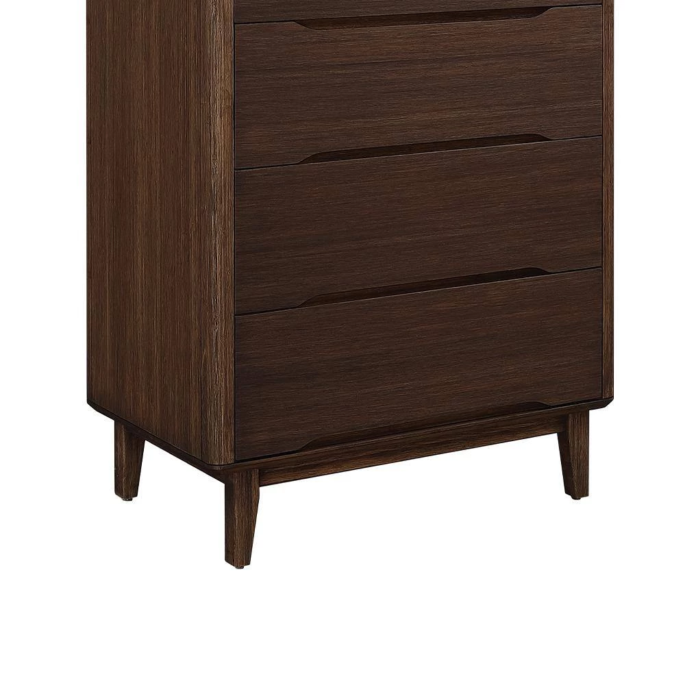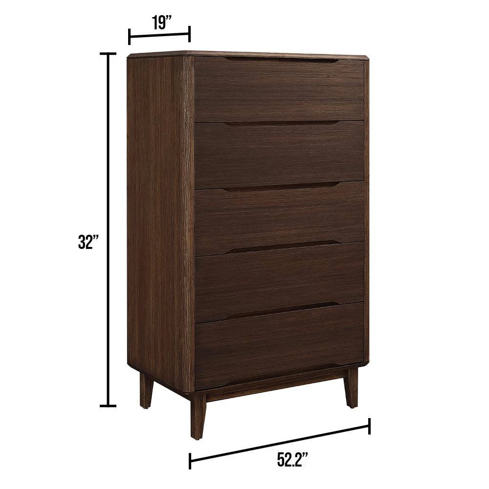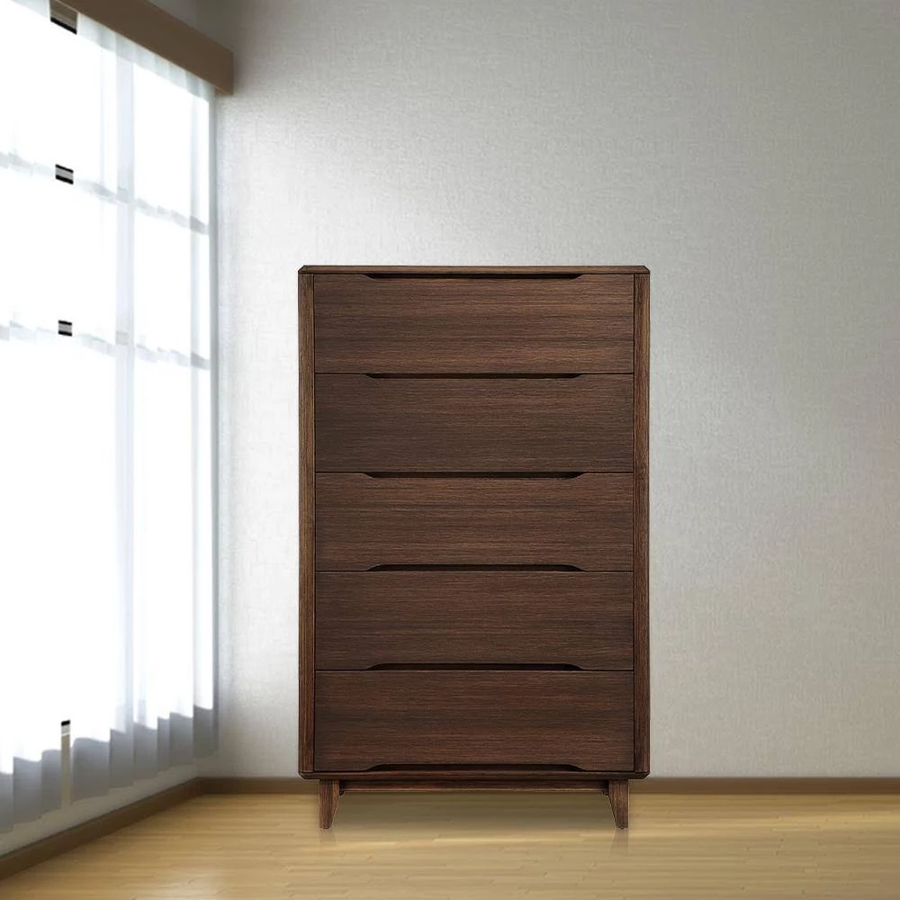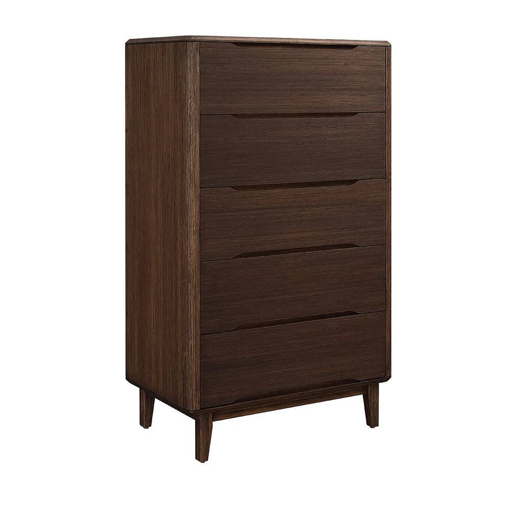 Beautifully finished on all four sides, the Currant’s smooth design and softly rounded corners show off the beautiful color and grain of the solid bamboo material. The Currant chests all feature solid bamboo drawer boxes constructed using English dovetail joinery, and soft closing, under mount drawer glides. Finishing the look are sleek recessed drawer pulls, and handsomely shaped legs which taper towards the floor.