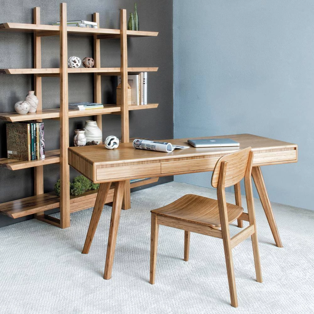 A stylish small-space solution, the Currant writing desk’s clean and functional design features trim tapered legs, and three generous self-closing storage drawers which span the entire width of the desk. The writing desk measures 60″ long, 24″ deep and 30″ high, and is available in our caramelized bamboo or rich black walnut finish. Crafted in 100% solid Moso bamboo, the Currant writing desk makes it easy for you to promote sustainability in a lovely, classic and functional way in your home.