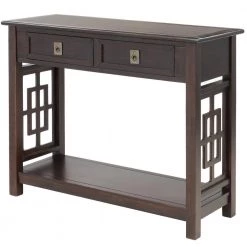 36 in. Rectangle Espresso Wood Console Table with 2-Drawers and Bottom Shelf by Qualfurn