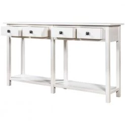 44.3 in. White Rectangle Wood Console Table Sideboard with Bottom Shelf and 2-Drawer by VERYKE