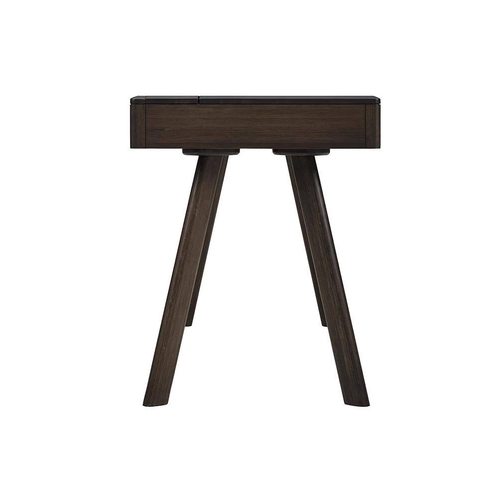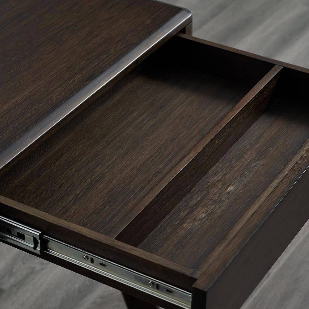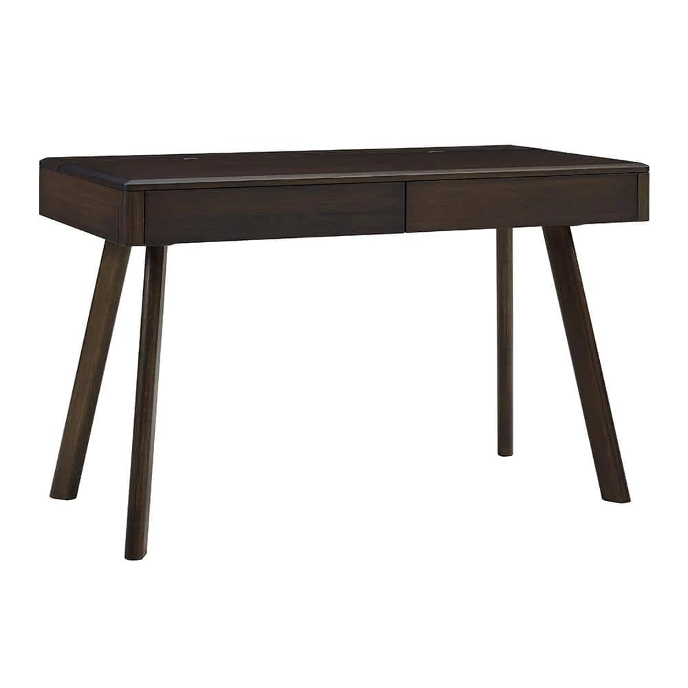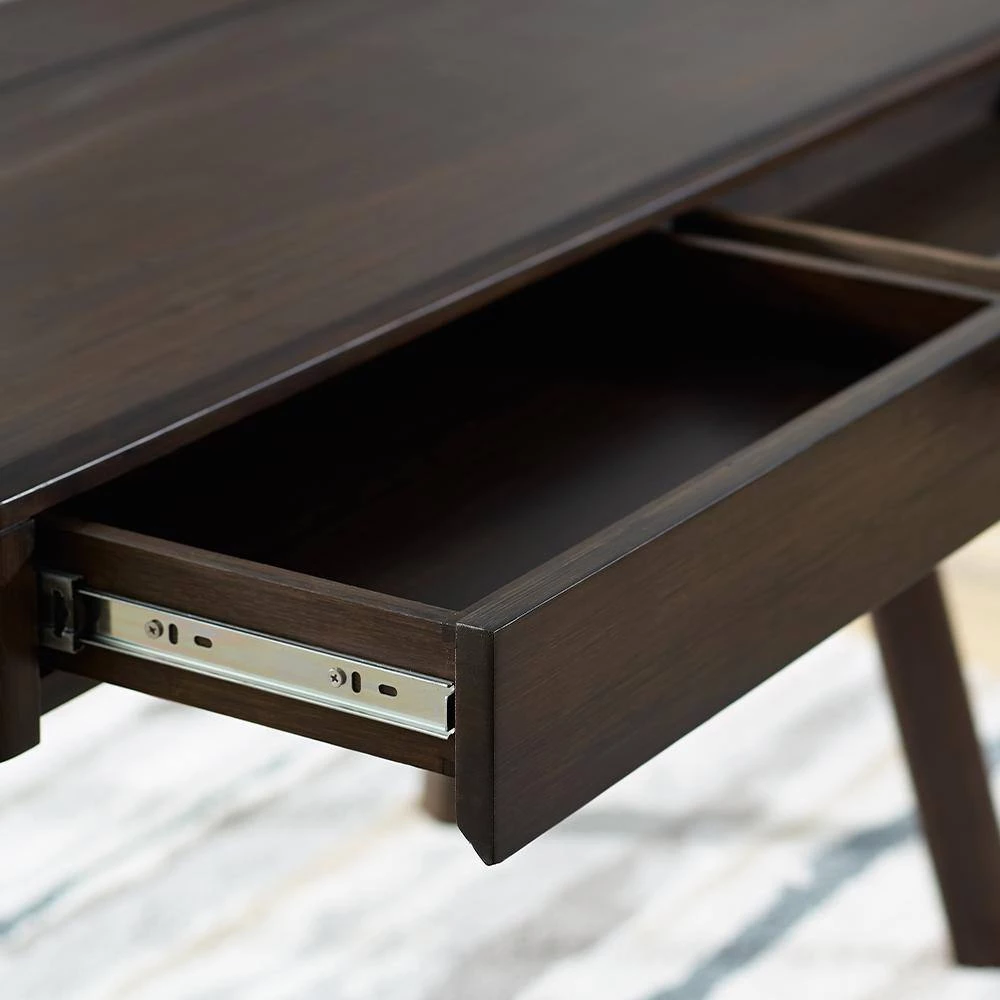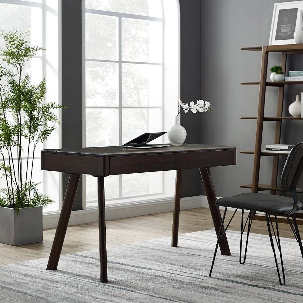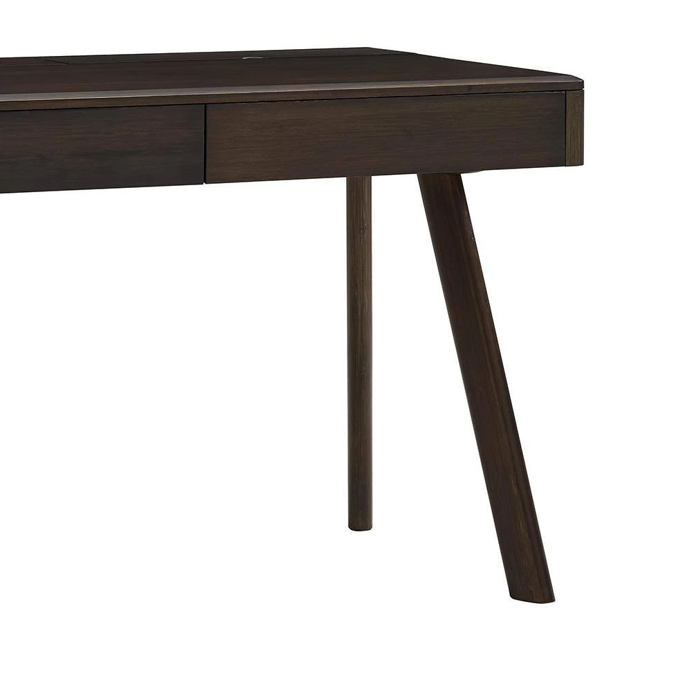 Expertly crafted in earth friendly solid bamboo, one of the planet’s most sustainable and rapidly renewable resources; Greenington’s modern Jasmine writing desk pairs a tailored slim profile with beautifully angled legs. A stylish small-space solution, the Jasmine writing desk brings the simple elegance of Mid-Century design. Featuring two large storage drawers which span the entire width of the desk, also offering handy cord management, power and USB outlets, offering convenience and up to date connectivity for your home office. Shown in the Havana finish, variations in grain and color enrich the natural beauty of bamboo furniture and make each piece unique. Slight differences in bamboo shade colors are signs that the furniture has been crafted from solid bamboo and is considered a benchmark of quality. The Jasmine desk makes it easy for you to promote sustainability in a lovely, classic and functional way in your home. Available in classic caramelized and havana finishes, the desk measures 48″ x 24″ x 30″.