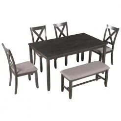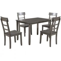 5-Piece Rectangle Wood Top Gray Dining Table Set by Qualfurn