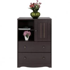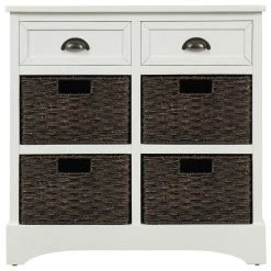 White Wood Rustic Storage Cabinet with 2 Drawers and 4 Classic Rattan Basket by VERYKE