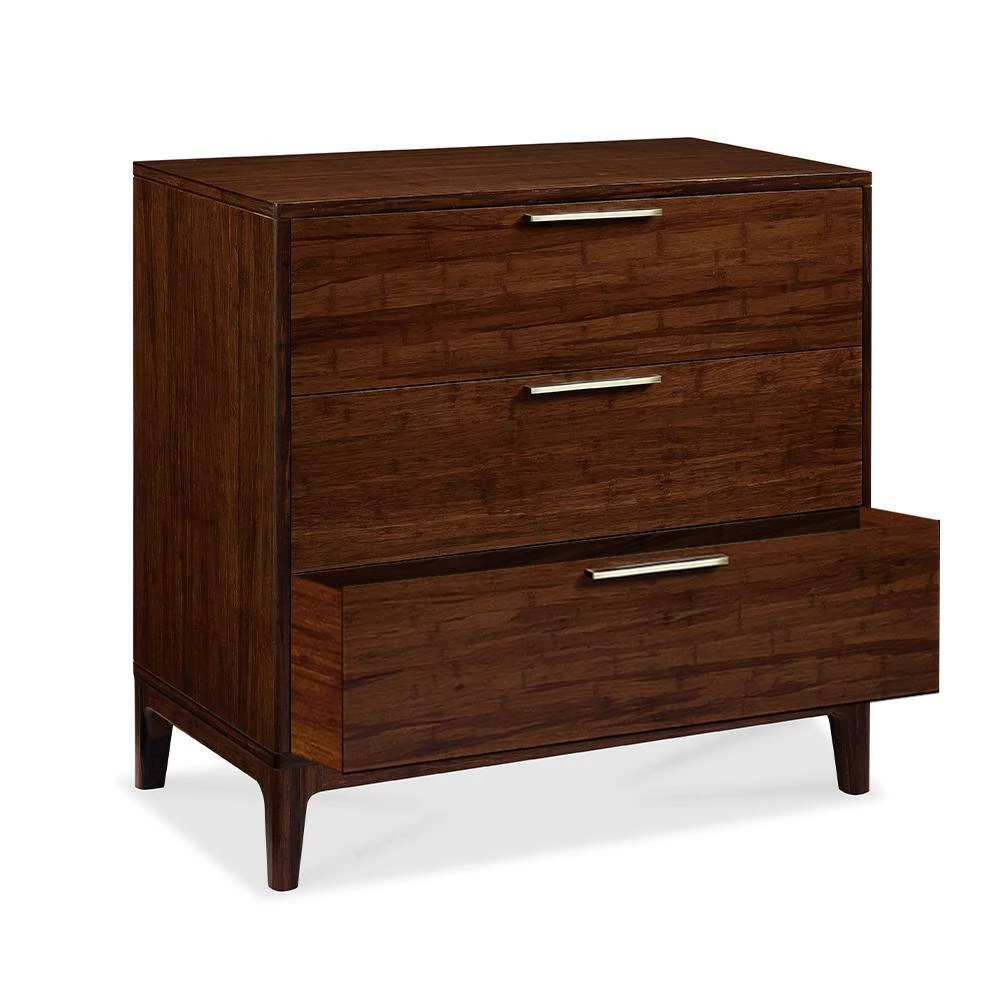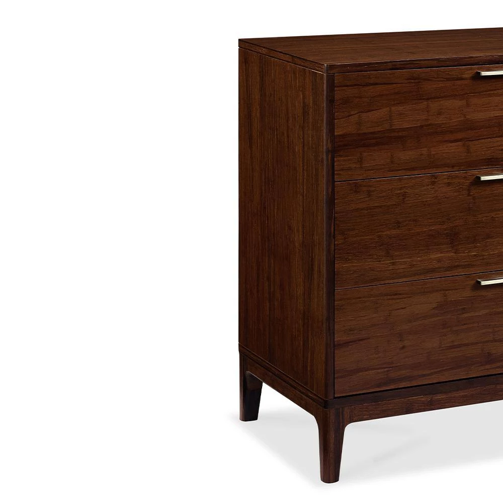 Mercury three drawer dresser by Greenington brings the simple elegance of Mid-Century design into the modern home. Beautifully finished on all four sides, the Mercury dresser features include five sided drawer boxes with English dovetail, sleek steel drawer pulls, and soft closing – under mount drawer glides. Crafted in exotic bamboo with the character, beauty, strength and feel of a truly one-of-a-kind, tropical hardwood. Exotic’s rich natural finish is not a stain, but the color that is achieved through the process of cooking the sugars in the bamboo with heat and pressure.