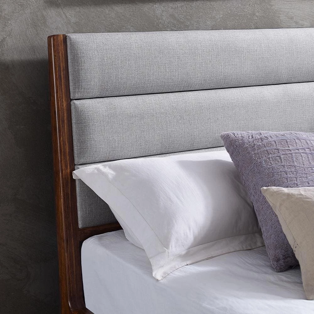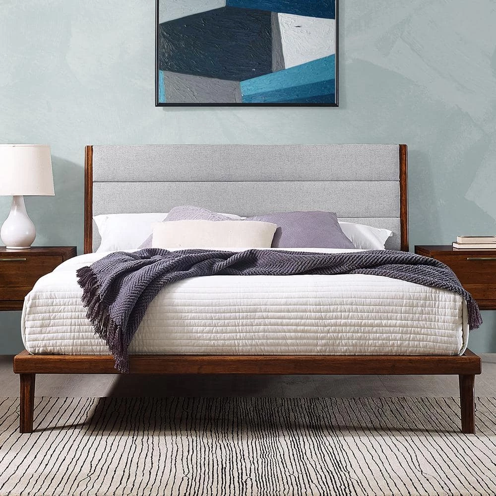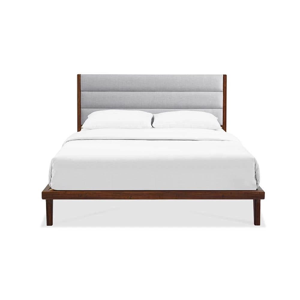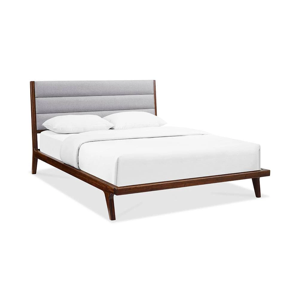 The Mercury platform bed by Greenington brings the simple elegance of Mid-Century design into the modern home. Framed in exotic bamboo, the platform bed’s upholstered headboard in soft woven fabric brings a sense of refined luxury to the bedroom. Additional features include wrap around solid bamboo side rails and footboard with modern angled legs. Designed to be used with a mattress only, the Mercury features a solid bamboo European slat system, eliminates the need for a box spring, and provides constant ventilation for your mattress. Crafted in exotic bamboo with the character, beauty, strength and feel of a truly one-of-a-kind, tropical hardwood. Available in your choice of Queen, King, and California King sizes.
