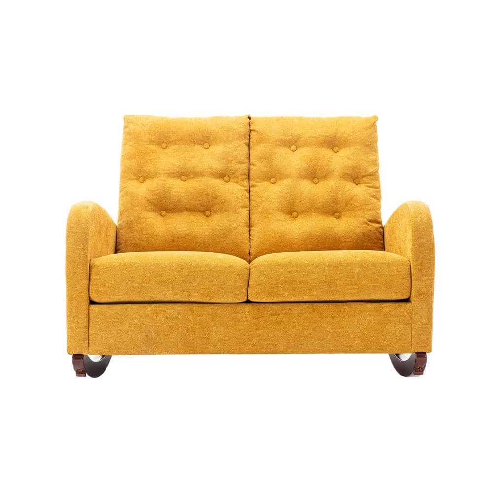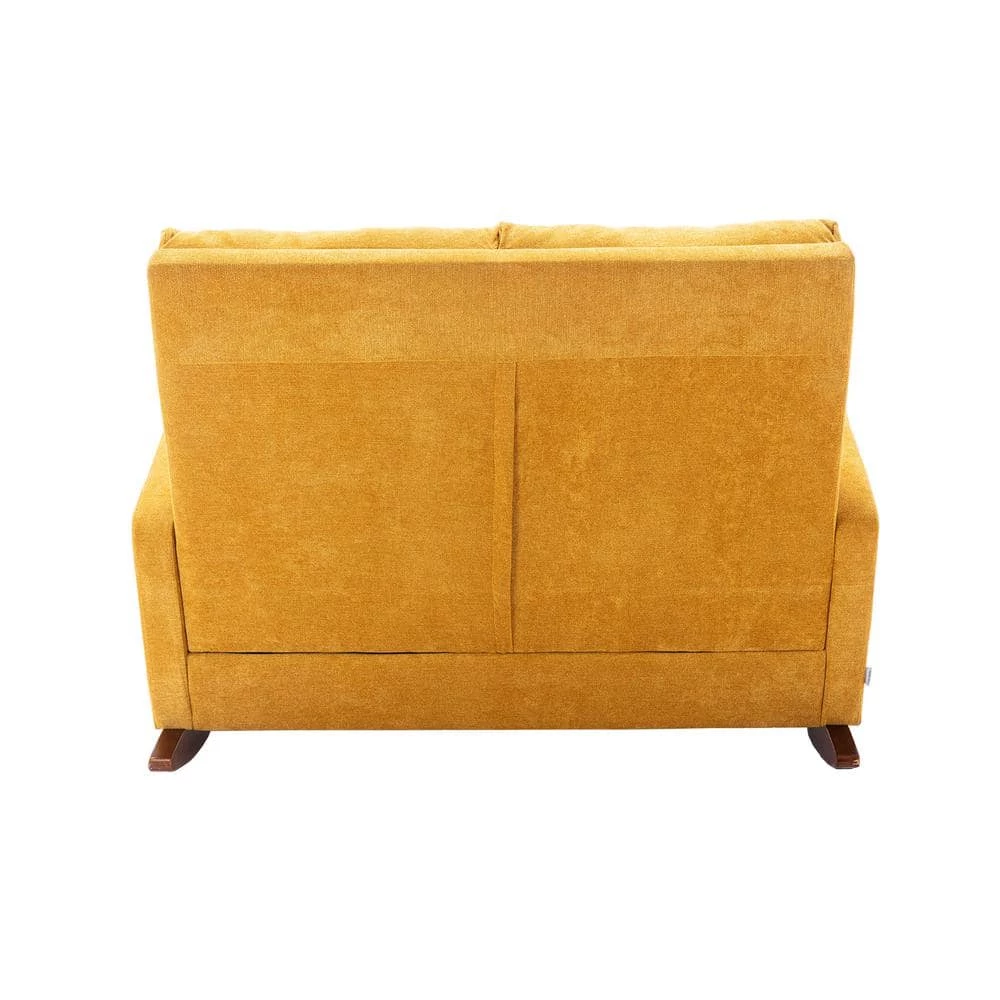 High back rocking sofa nursery sofa. Comfortable rocker fabric padded seat. Modern high back arm-sofa. This rocking sofa is the ultimate modern design piece for your home. It has a small footprint, yet there is no compromise on comfort. With its gentle rock and supportive back, its therapeutic value is irreplaceable. Upholstered in a velvet fabric, this product is designed to be a timeless addition to any room in your house or apartment.