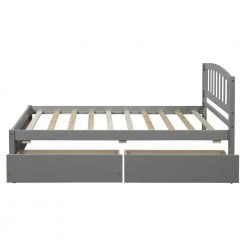 Gray Wood Frame Queen Size Velvet Upholstered Platform Bed by VERYKE