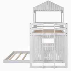 White Twin Size Low Loft Wood House Bed with 2-Front Windows by Qualfurn