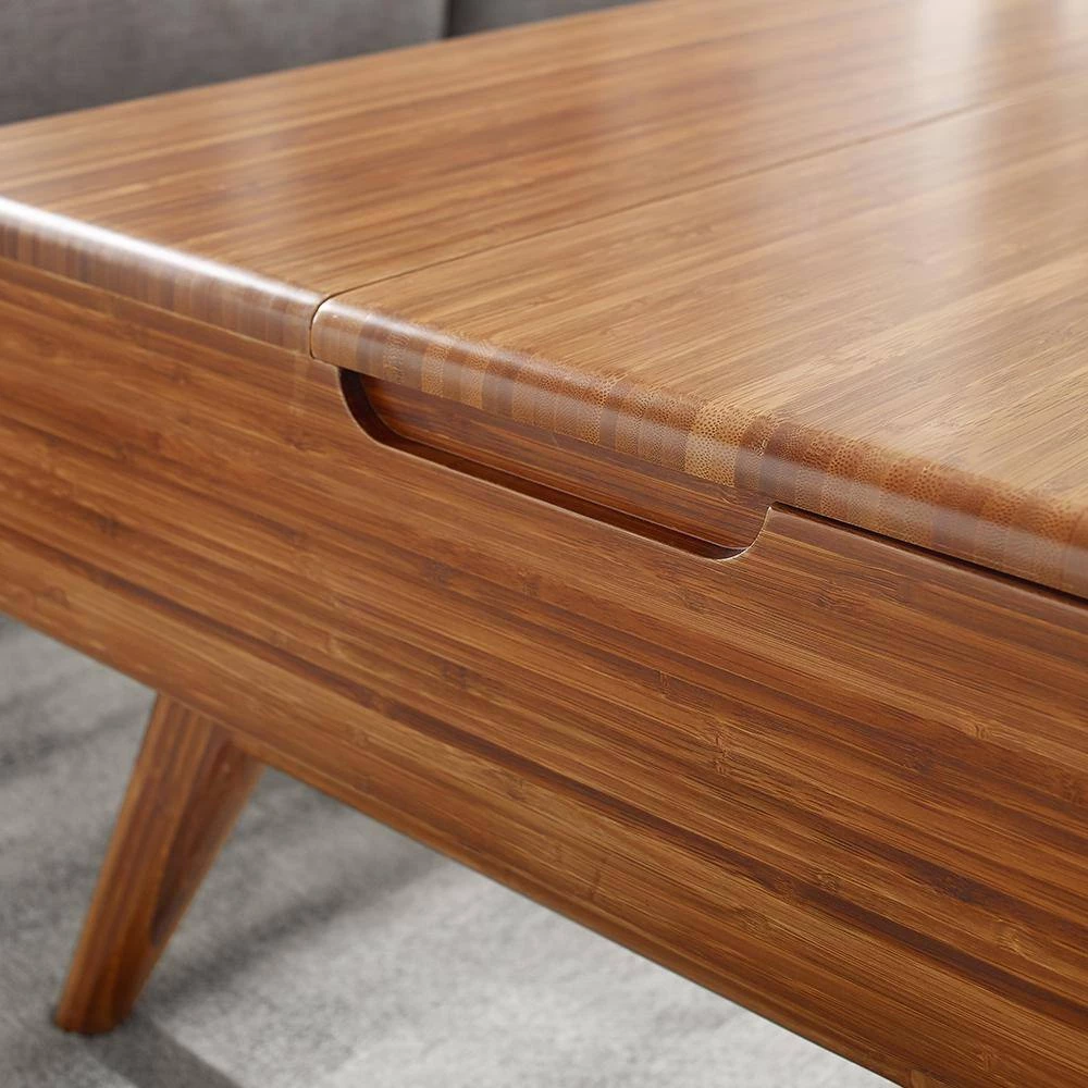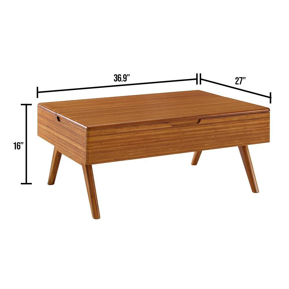 The Rhody Lift Top storage coffee table offers all that’s great about mid-century design. Beautifully finished on all 4 sides, the Rhody’s effortless lift top work surface reveals hidden interior storage, bringing style and essential function to your living space. Expertly crafted in earth friendly solid bamboo and shown in our Amber finish. Variation in grain and color enrich the natural beauty of bamboo furniture and make each piece unique. Slight differences in bamboo shade colors are signs that the furniture has been crafted from solid bamboo and is considered a benchmark of quality. Ships fully assembled.
