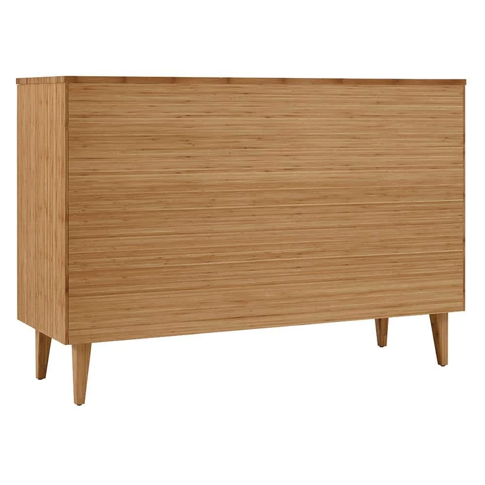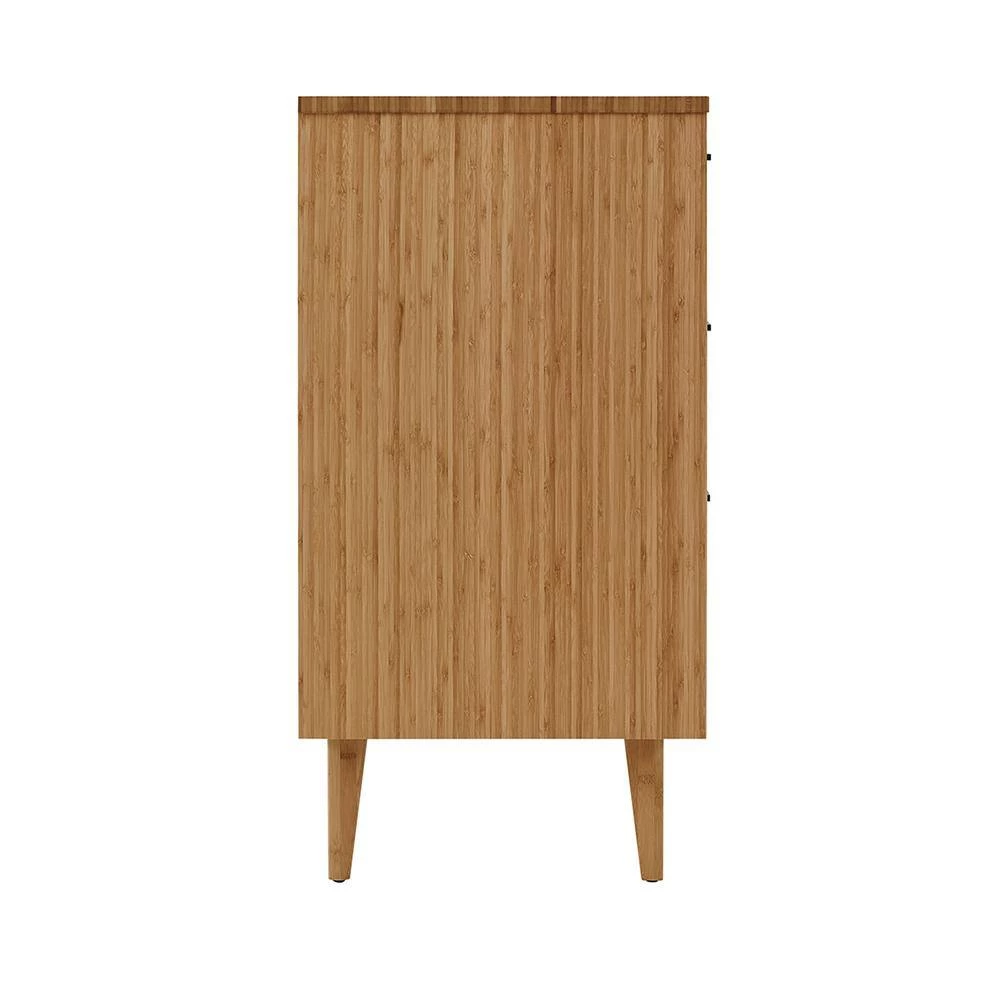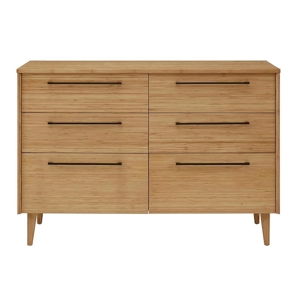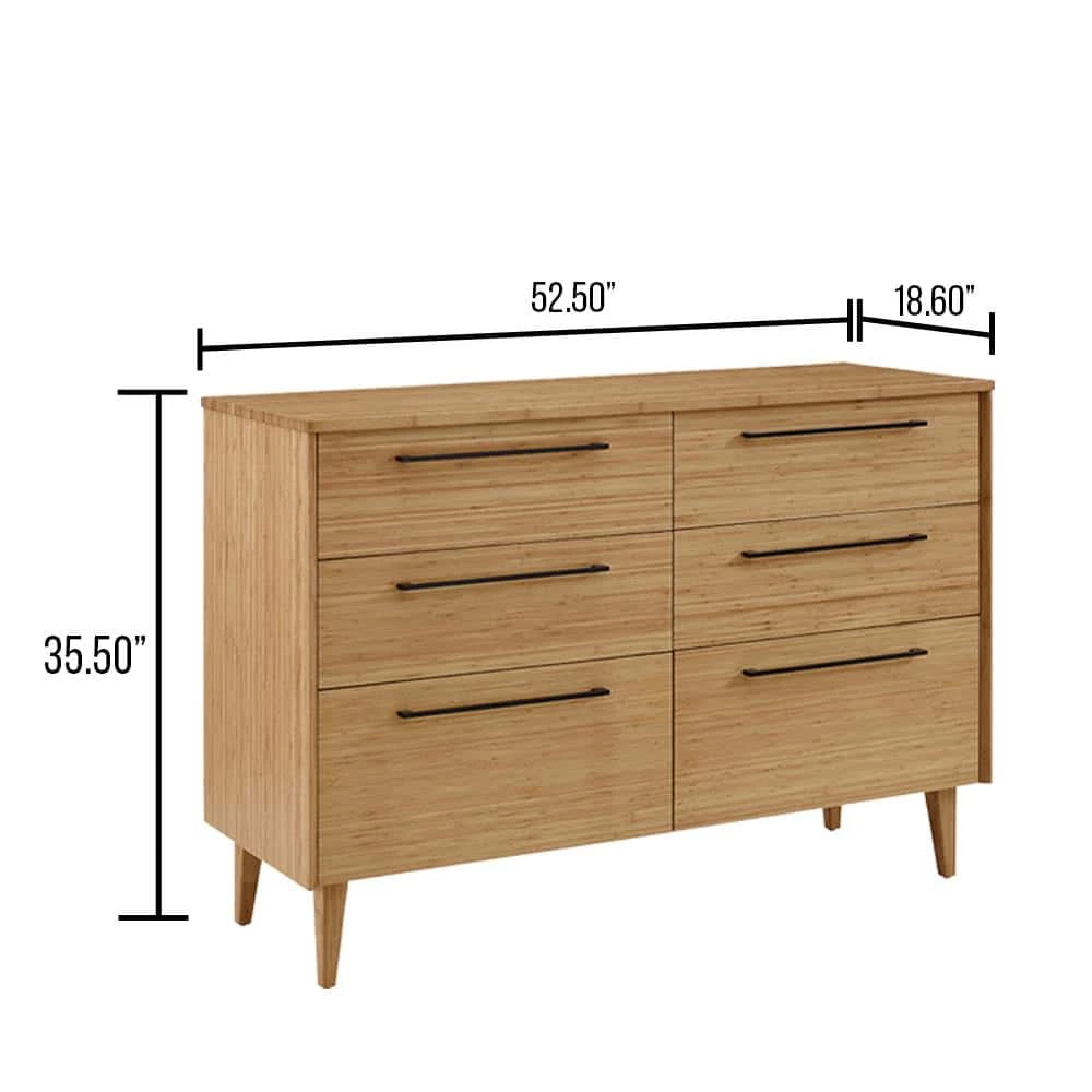 Showcasing the beautiful color and grain of solid bamboo, the smartly scaled Sienna six drawer double dresser features contemporary styling, clean lines and beautifully beveled edges. The Sienna double dresser is beautifully finished on all four sides and features a 5-sided drawer box with English dovetail, sleek matte black stainless steel pulls, under mount drawer glides and soft closing drawers. Available in caramelized and rich Mocha finishes.