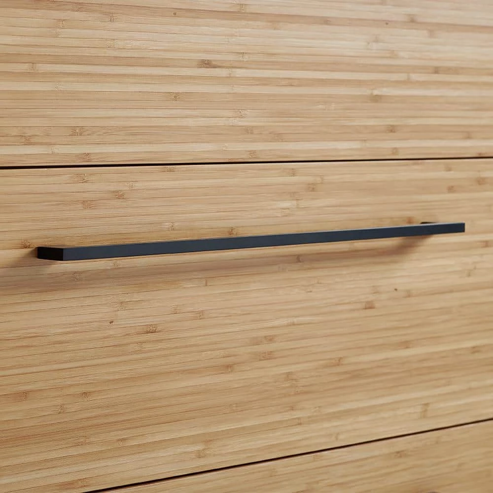 - Sleek matte black steel drawer pulls