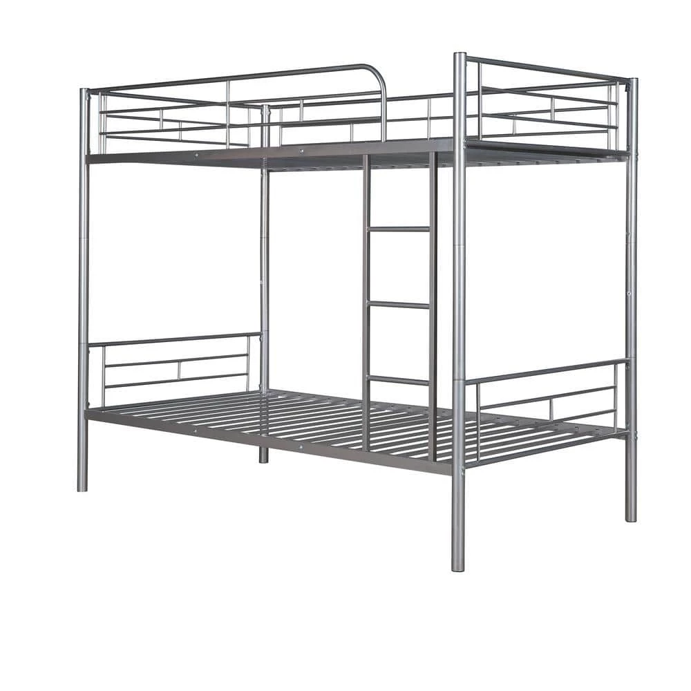 The simple yet contemporary twin-over-twin bunk bed is a modern classic, featuring a streamlined steel-crafted frame complimented by an eye-catching chrome finish. With support you can rely on, the bunk bed is constructed with a sturdy Quality Tested steel frame that eliminates excess wobbling while adding solid stability and durability allowing users to sleep soundly.An ideal space-saver and a perfect addition for a growing family, the bunk bed efficiently accommodates little ones, and young teens, allowing them the freedom and space to host friends and also offering a sleeping solution for younger sibling that share bedroom space – split the single bunk into two individual beds with ease if you move into a bigger home or your needs change.