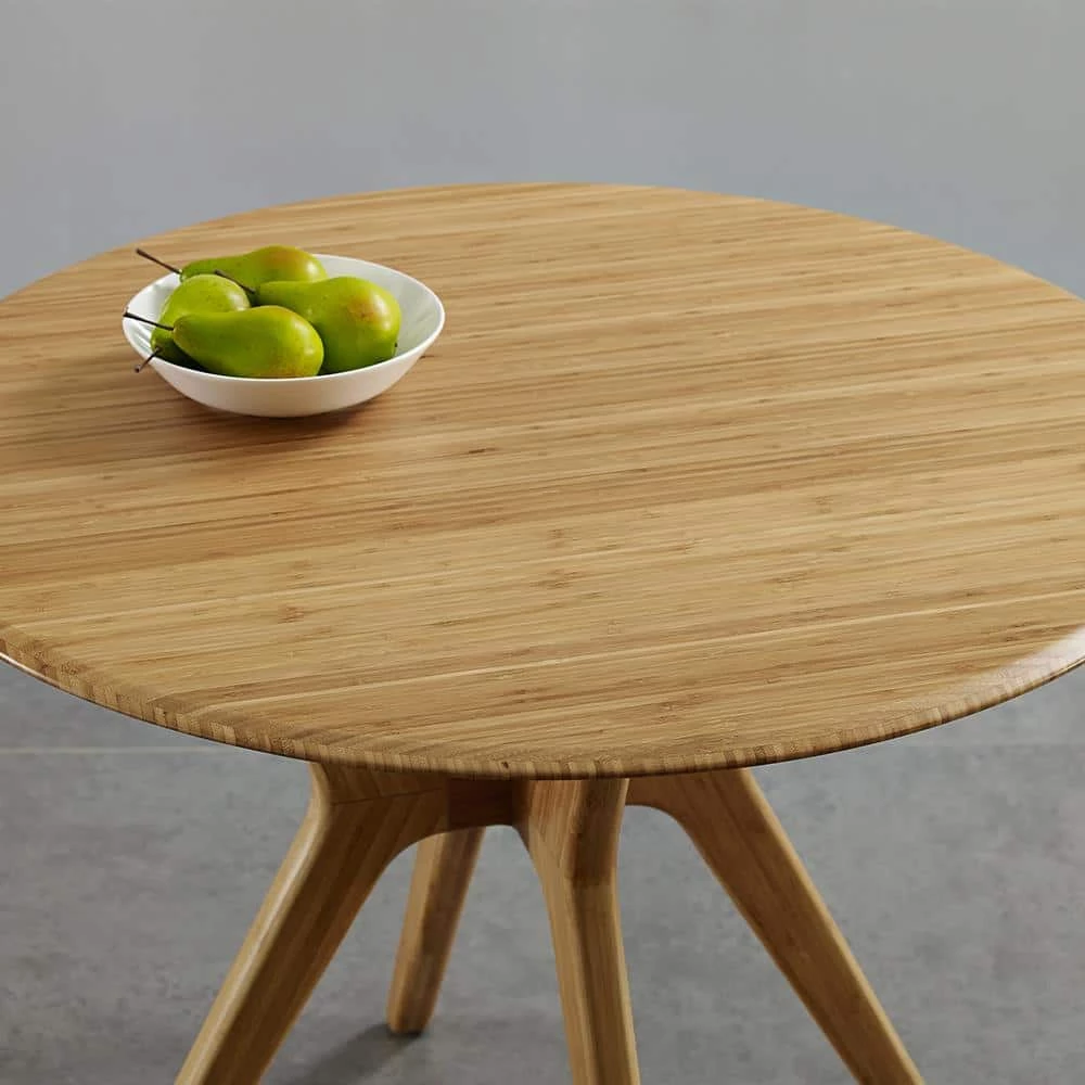 The modern look of the Sitka dining table takes its cues from classic Danish mid-century design. Expertly crafted in earth friendly solid bamboo, the architecturally inspired design of Greenington’s new Sitka features intelligent engineering, beautiful details, and an elegant profile. The Sitka dining table pairs beautifully with the Cassia dining chair, which is available in your choice of a solid bamboo or upholstered black leather seat. Cassia’s graceful silhouette, tapered legs, and gently rounded supports combine to give beauty, strength and comfort. The Sitka dining collection is available in classic caramelized finish. No stain is used, the appealing caramelized color is achieved with heat and pressure. Variation in grain and color enrich the natural beauty of bamboo furniture and make each-Piece unique. Slight differences in bamboo shade colors are signs that the furniture has been crafted from solid bamboo and is considered a benchmark of quality. Crafted in 100% solid Moso bamboo, the Sitka dining table makes it easy for you to promote sustainability in a lovely, classic and functional way in your home.