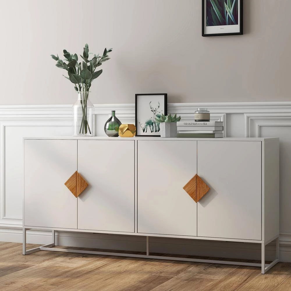 - This sideboard is made of E1 MDF and iron frame stand and can be use for a long time. It also can be used as a TV stand in living room.