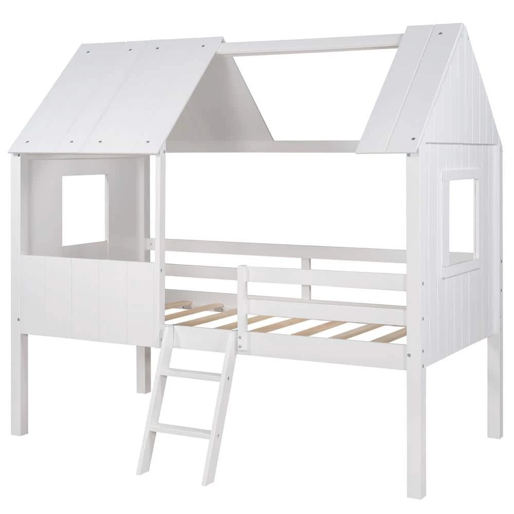 - Featuring roof and two side windows, this bed doubles as a semi-enclosed play place perfect for kids to explore their imaginations.